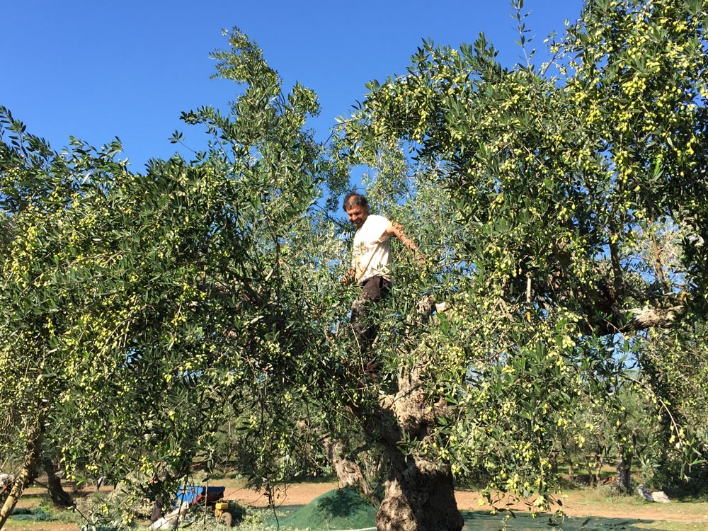 Ο καρπός συλλέγεται με το κλάδεμα των κλαδιών που φέρουν καρπό και ολοκληρώνεται με το τίναγμα των υπολοίπων. Οι μεγάλες κλάρες κλαδεύονται και περνούν την ίδια στιγμή από μηχάνημα το οποίο διαχωρίζει και συλλέγει τον καρπό από τα φύλλα. Ο καρπός στα κλαδιά που απομένουν στο δέντρο, συλλέγεται με χτένια και ιδιαίτερη προσοχή ώστε να μην τραυματισθεί. Ακολουθεί προσεκτικός διαχωρισμός φύλλων και καρπού στα ελαιόπανα και μπαίνει σε σακιά ώστε να οδηγηθεί την ίδια ημέρα στο ελαιοτριβείο προς ελαιοποίηση.